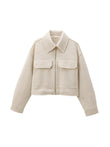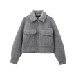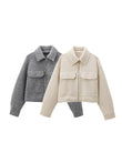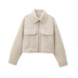 Cropped Jacket with Pockets for Women, Long Sleeve Coat Front Zipper Female Outerwear