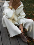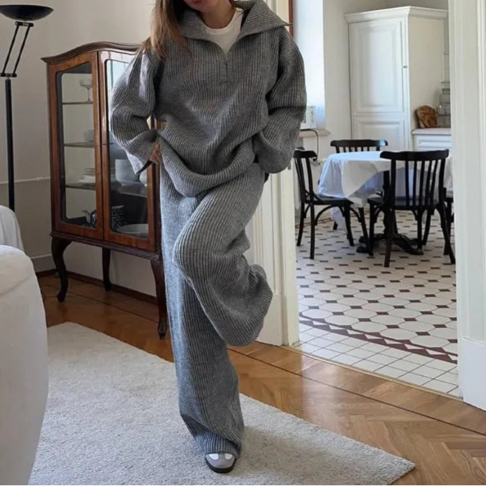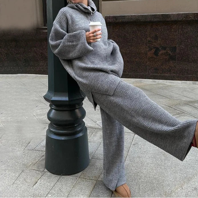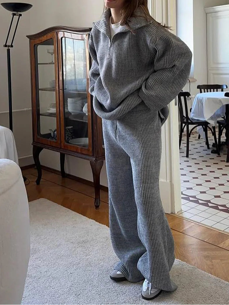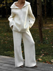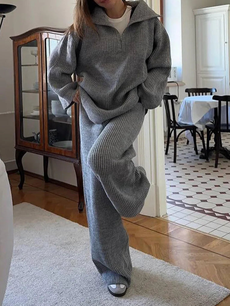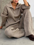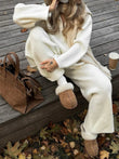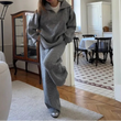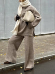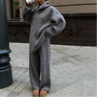 Women Pant Sets Knitted Top Plain Trouser Suit Casual Loose Pant Sets