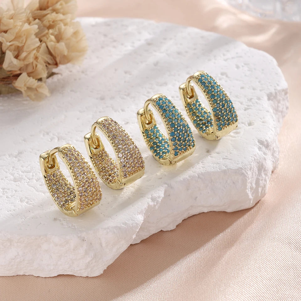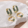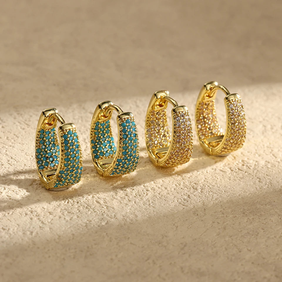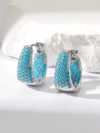 Cubic Zirconia U Shaped Flower Turquoise Design Hoop Earrings For Women