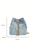 Vintage Denim Bucket Bag Retro Style Light Blue Ripped Edge Design Gold Chain Shoulder Bag