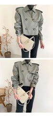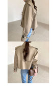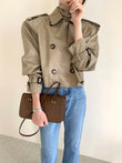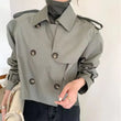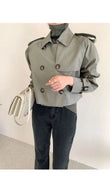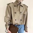 Vintage Double Breasted Crop Jacket Trench Jackets Women Loose Chic Windbreaker