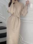 Vintage Turtleneck Buttons Long Sleeve Long Sweater Dress Winter Fashion