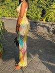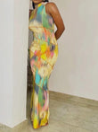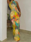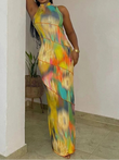Colorful Print Dress Women Sleeveless Patchwork Skinny Bodycon Dress