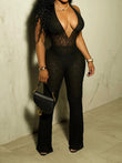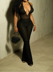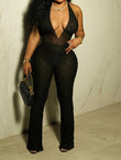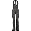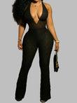 Sexy Mesh Halter Jumpsuit Women Backless Skinny Low-Neck Midnight Birthday Party Clubwear Activity Workout Overalls