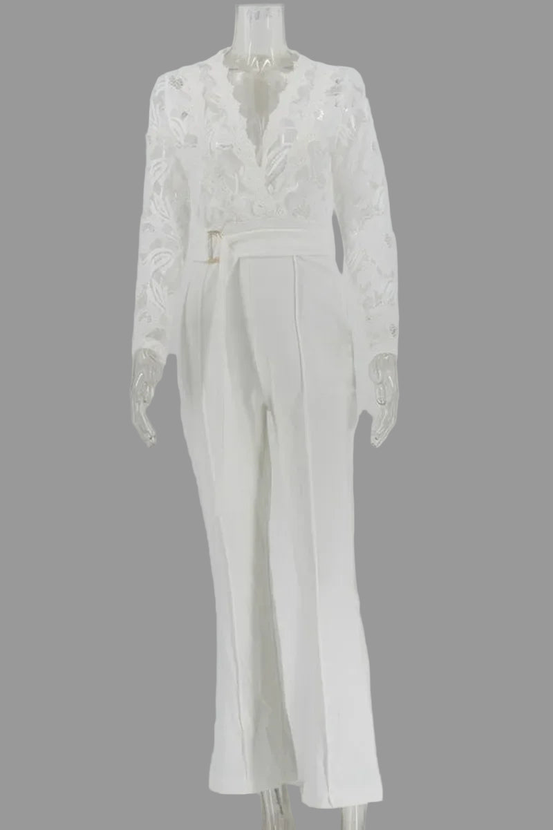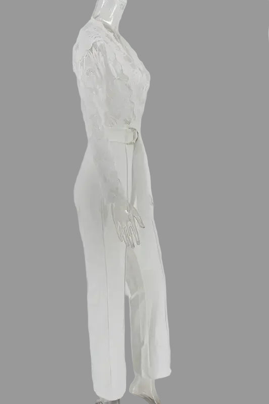 White Jumpsuit Women Overalls Elegant Lace One Piece Jumpsuit