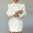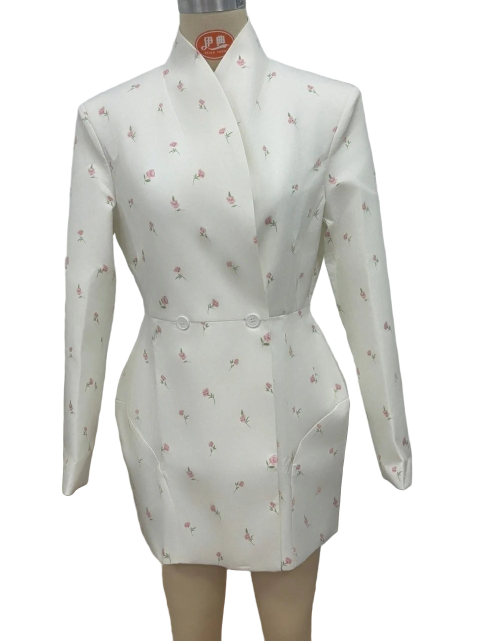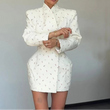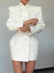 White Waist Cinching Floral Shoulder Pad Blazer Dress Single Breasted Jacket Female Outwear