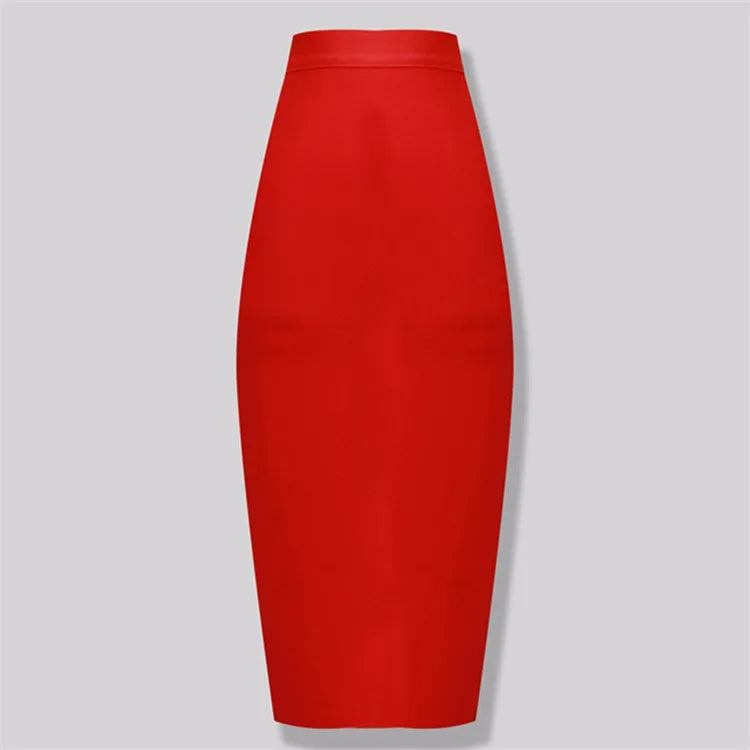 Women's Elastic Candy Color Bandage Skirt Bodycon Midi Calf Pencil Skirt For Elegant Ladies
