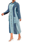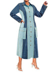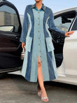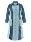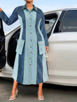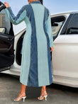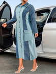 Plus Size Denim Dresses Women Long Sleeve Casual Button Pockets Striped Maxi Dress