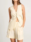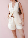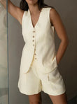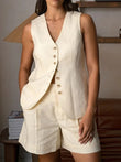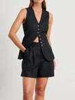 Cotton linen Chic Casual Vest Shorts Set Women's Fashion Commuter Sleeveless Loose Shorts Set