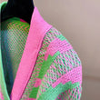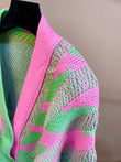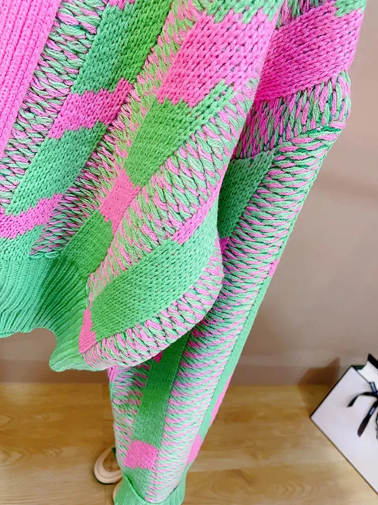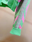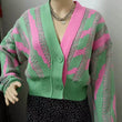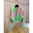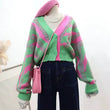 Women Color Block Green Crop Cardigan High Street Long Sleeve Knit Top Korean Fashion