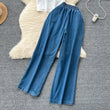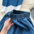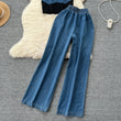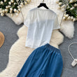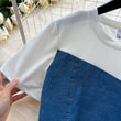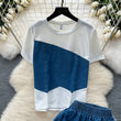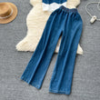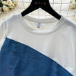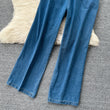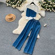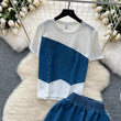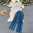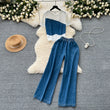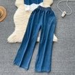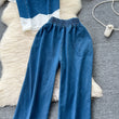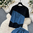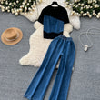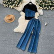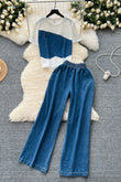 Women Denim pant sets Design Matching Color Short-sleeved T-shirt Tops + High-waisted Casual Pants