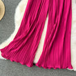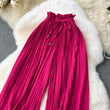 Women Long Pants Wide Leg Pant Solid Loose Casual Lace Up Tight High Waist Capris Regular Pleated Trousers