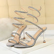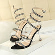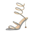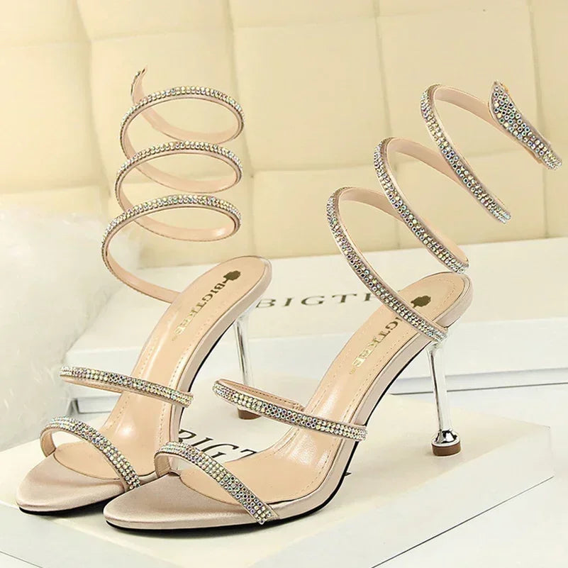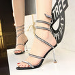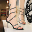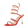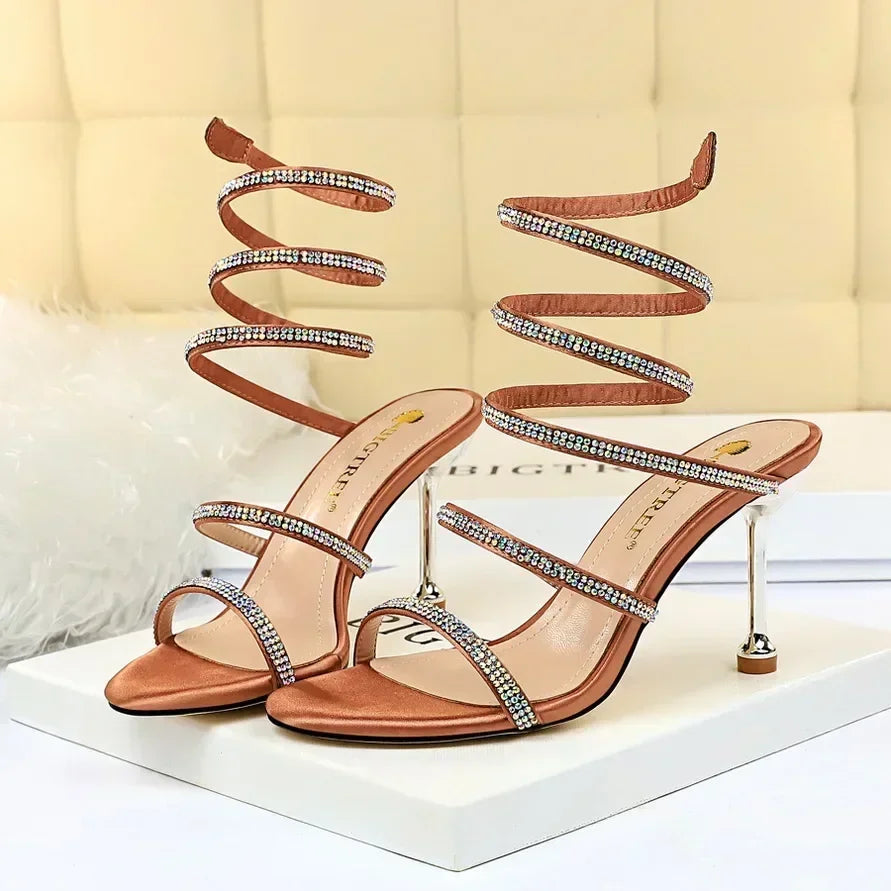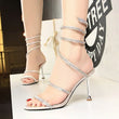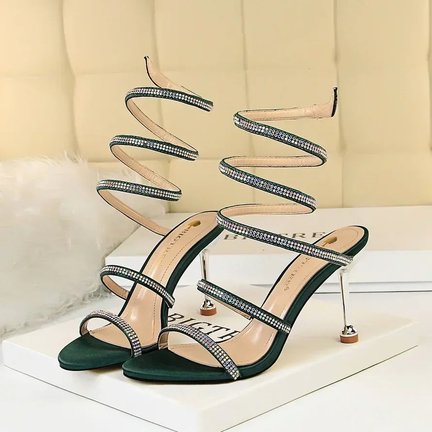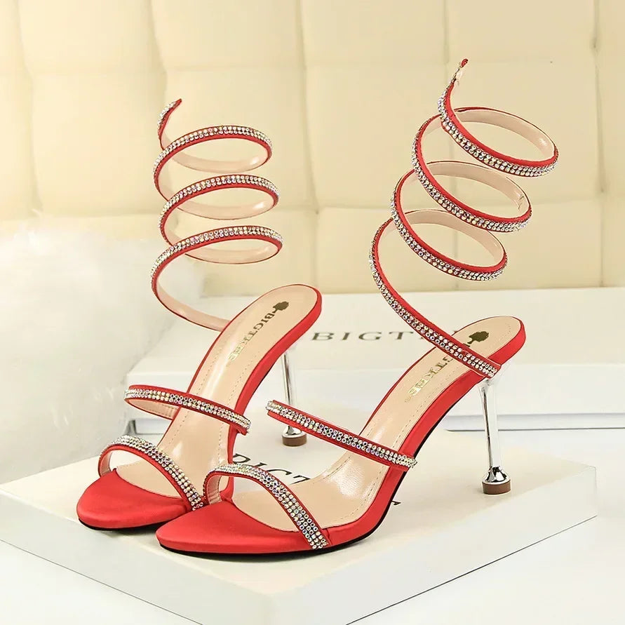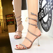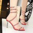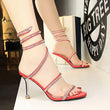 Women Luxury Party 8.5cm High Heels Summer Sexy Nightclub Sandals Female Red Green Ankle Strappy Roman Gladiator Crystal Sandles