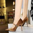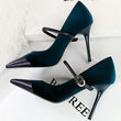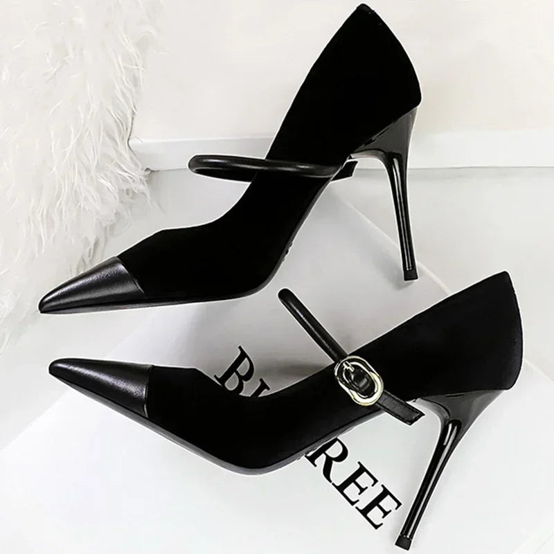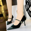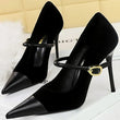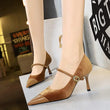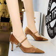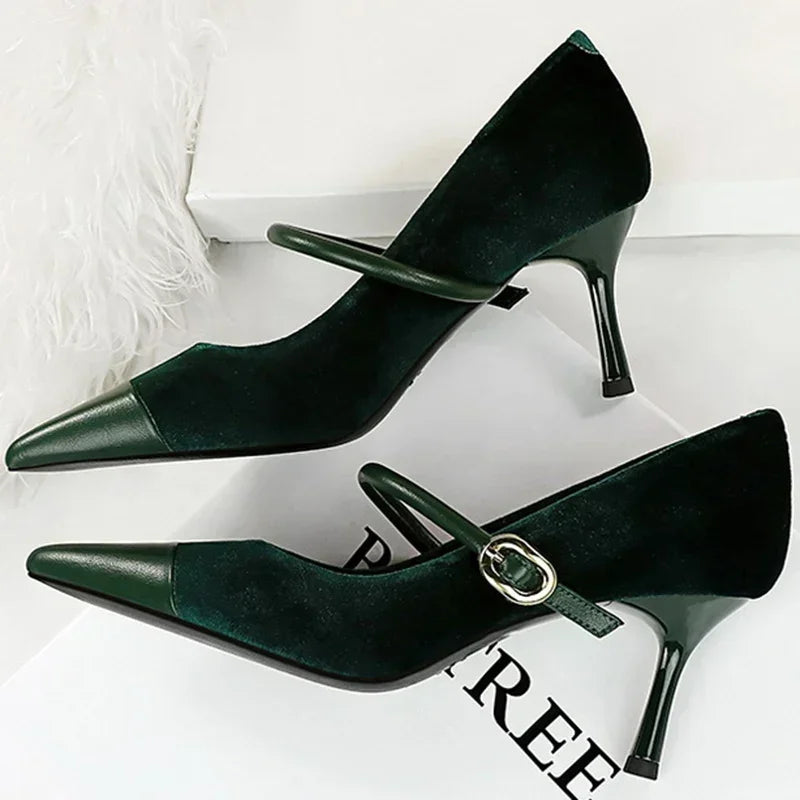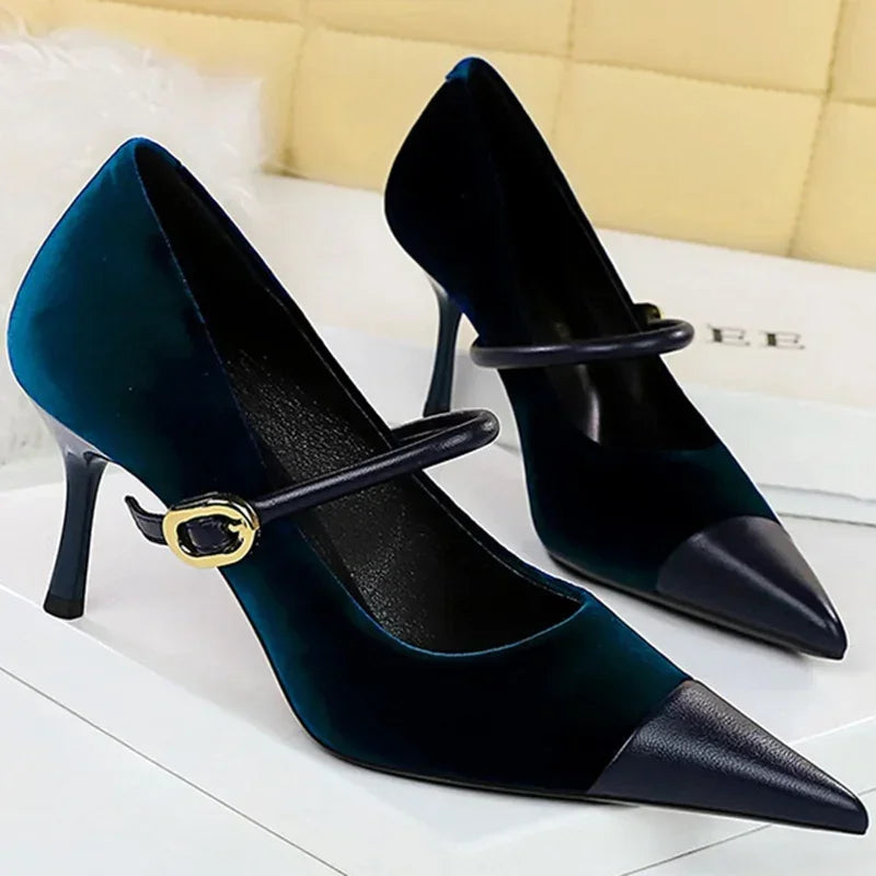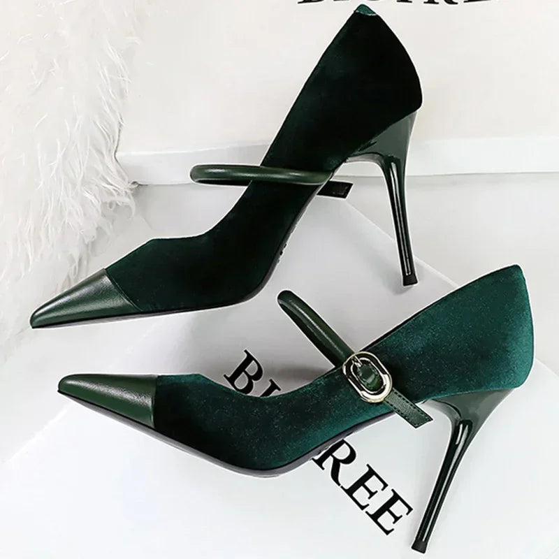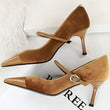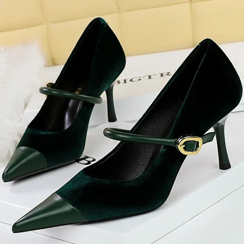 Women Pointed Toe 7cm 10cm Stiletto High Heels Party Mary Jane Pumps Lady Metal Buckle Prom Camel Strap Velvet Burgundy Shoes