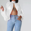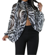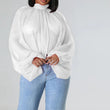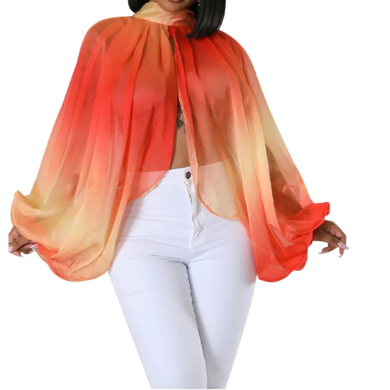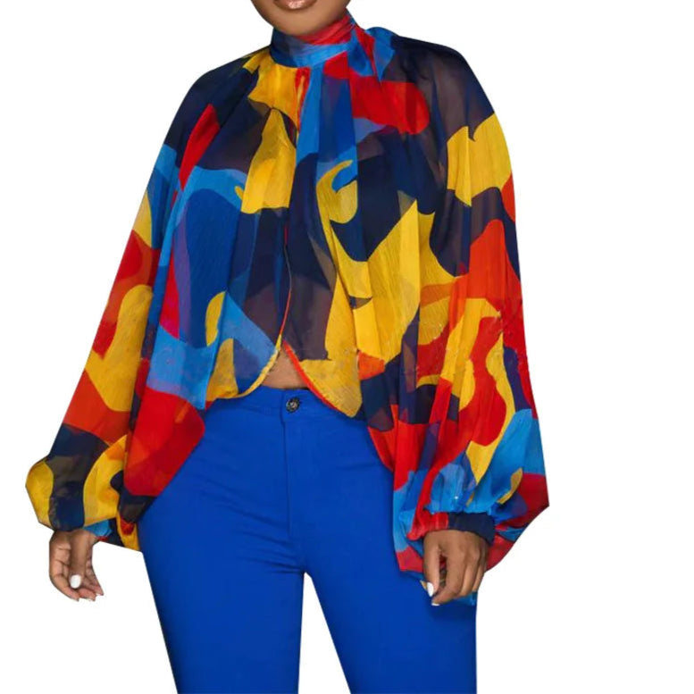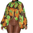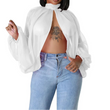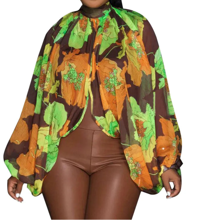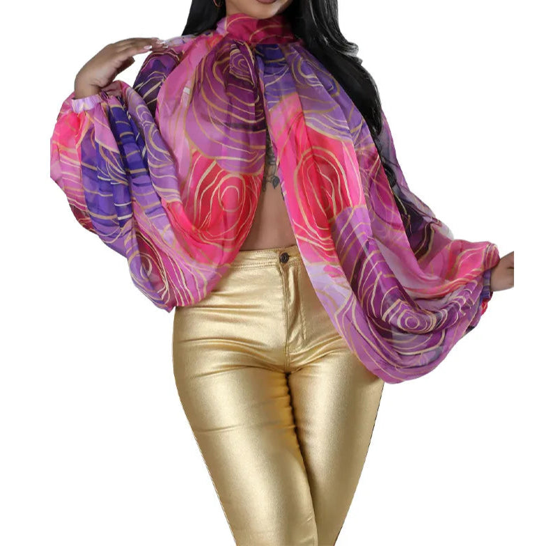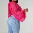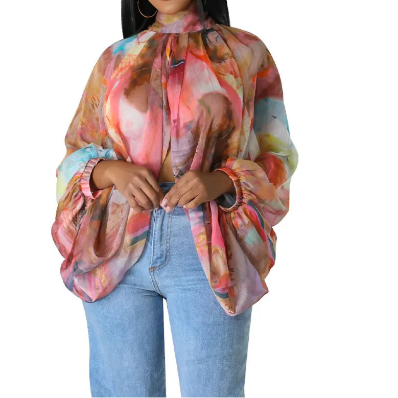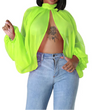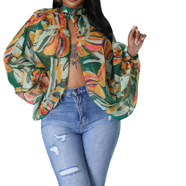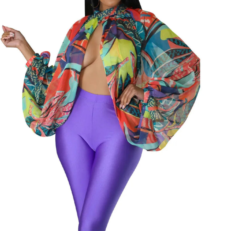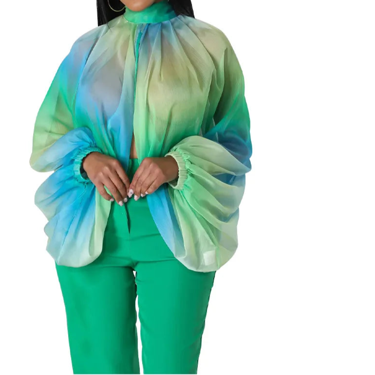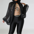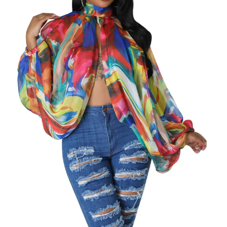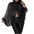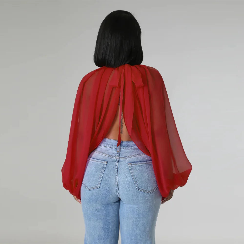 Womens Chiffon Blouse Sexy See Through Lantern Sleeve Front Back Open High Neck Blouses Tops