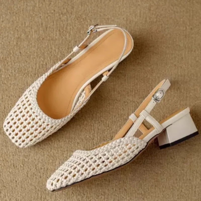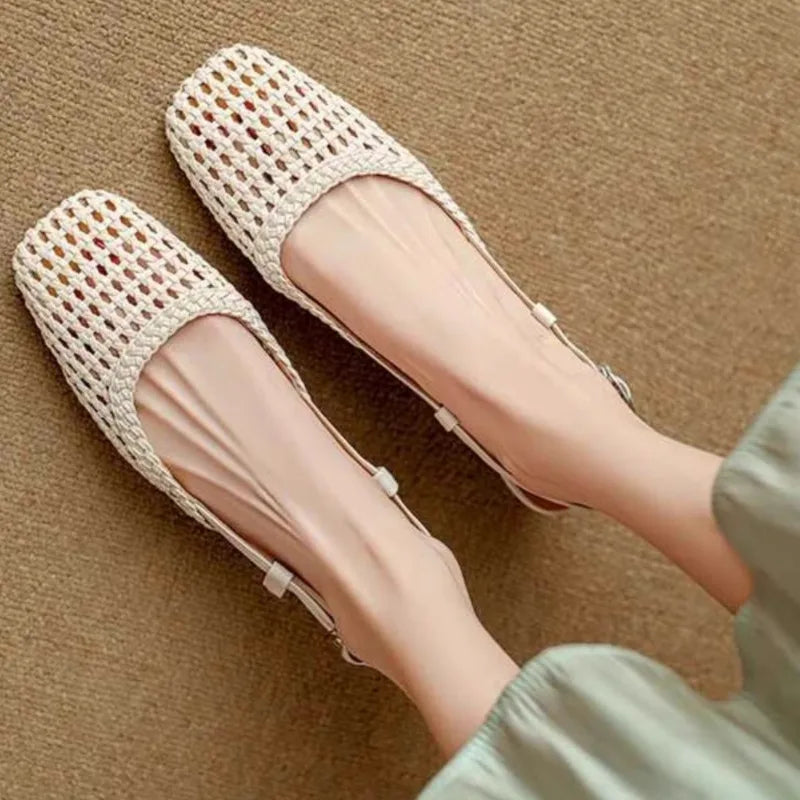 Women's Sandals Summer New Square Head Shallow Hollow Breathable One Line Buckle Shoes