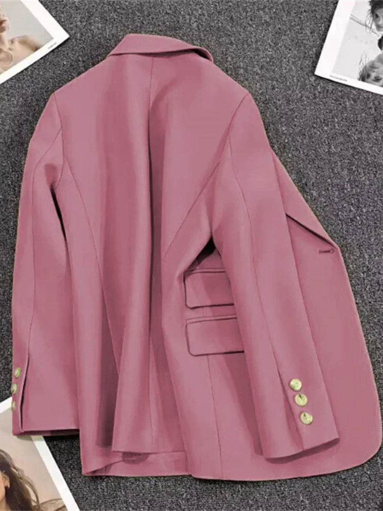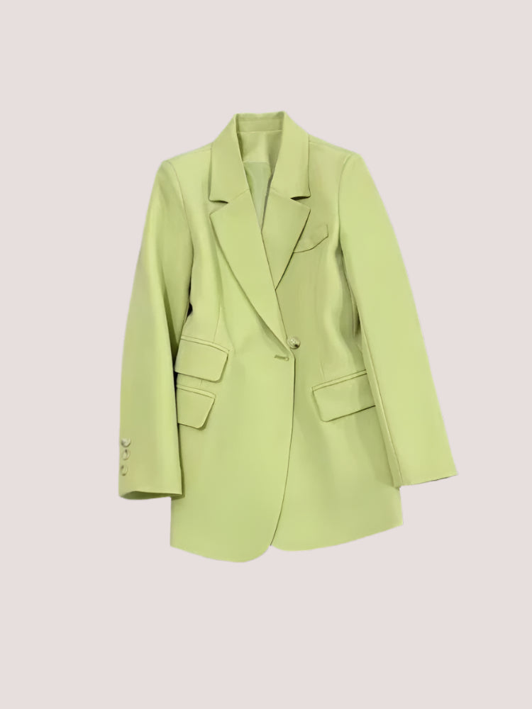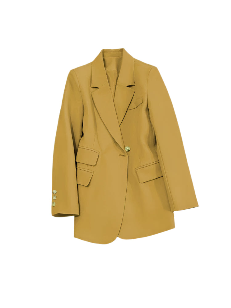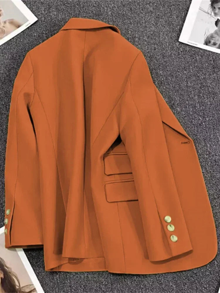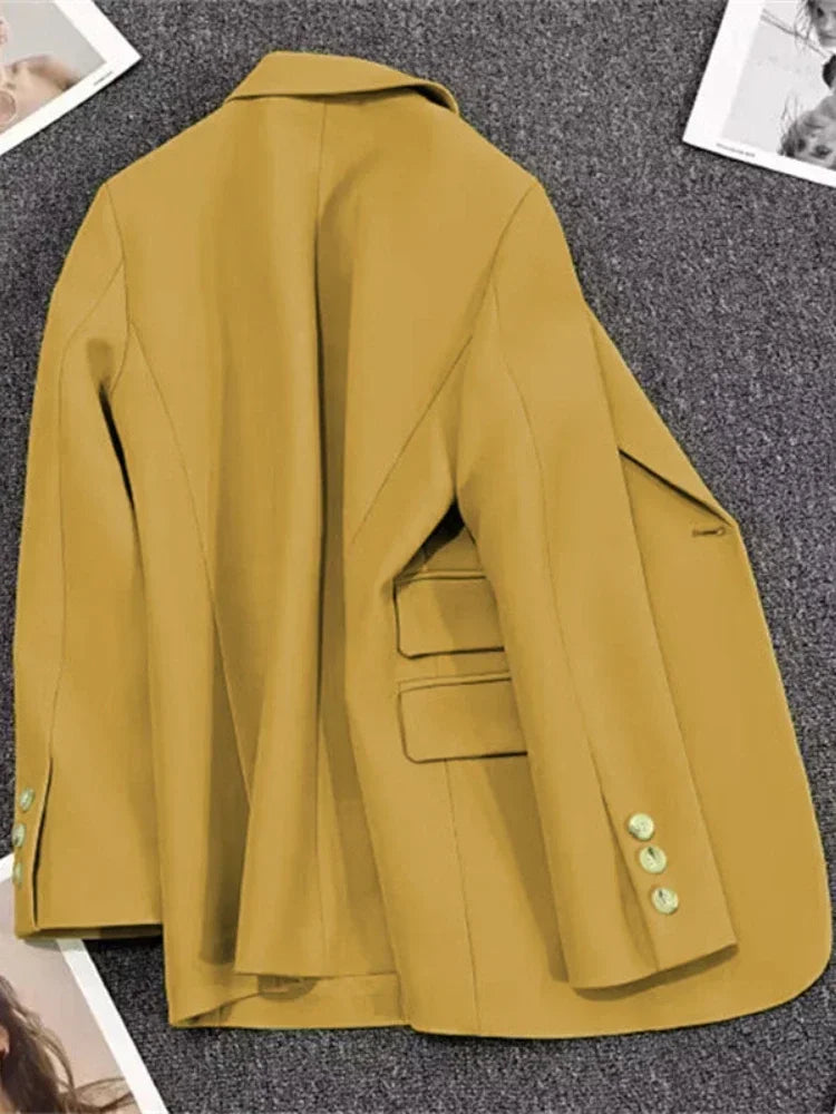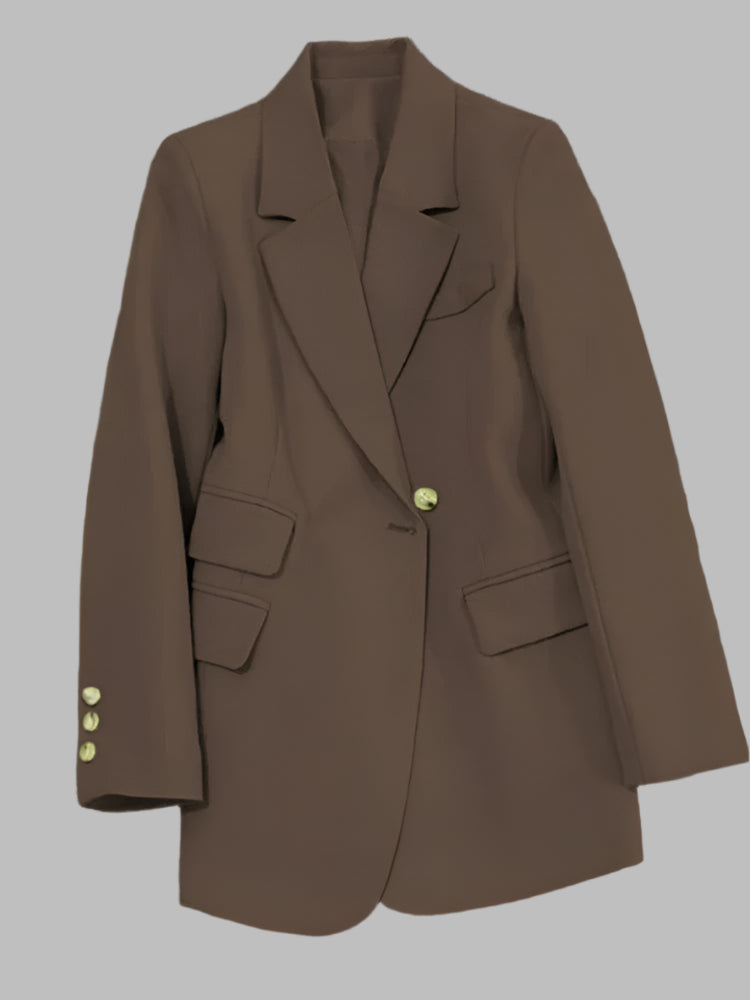 Women's Long Sleeve Office Blazer One Button Versatile Coats Casual Loose Blazers