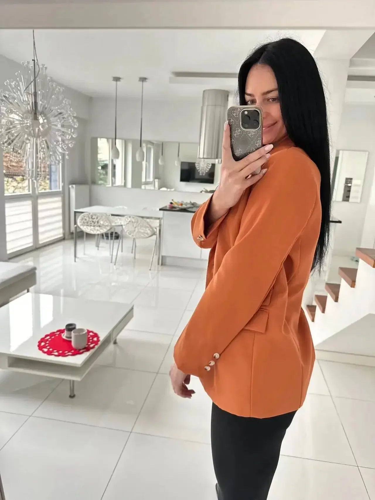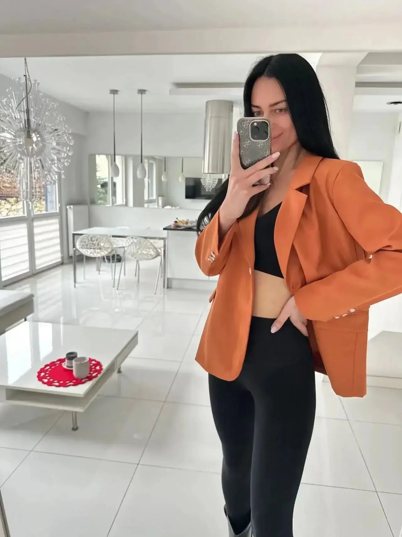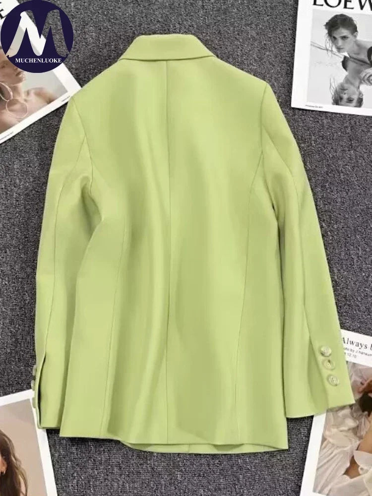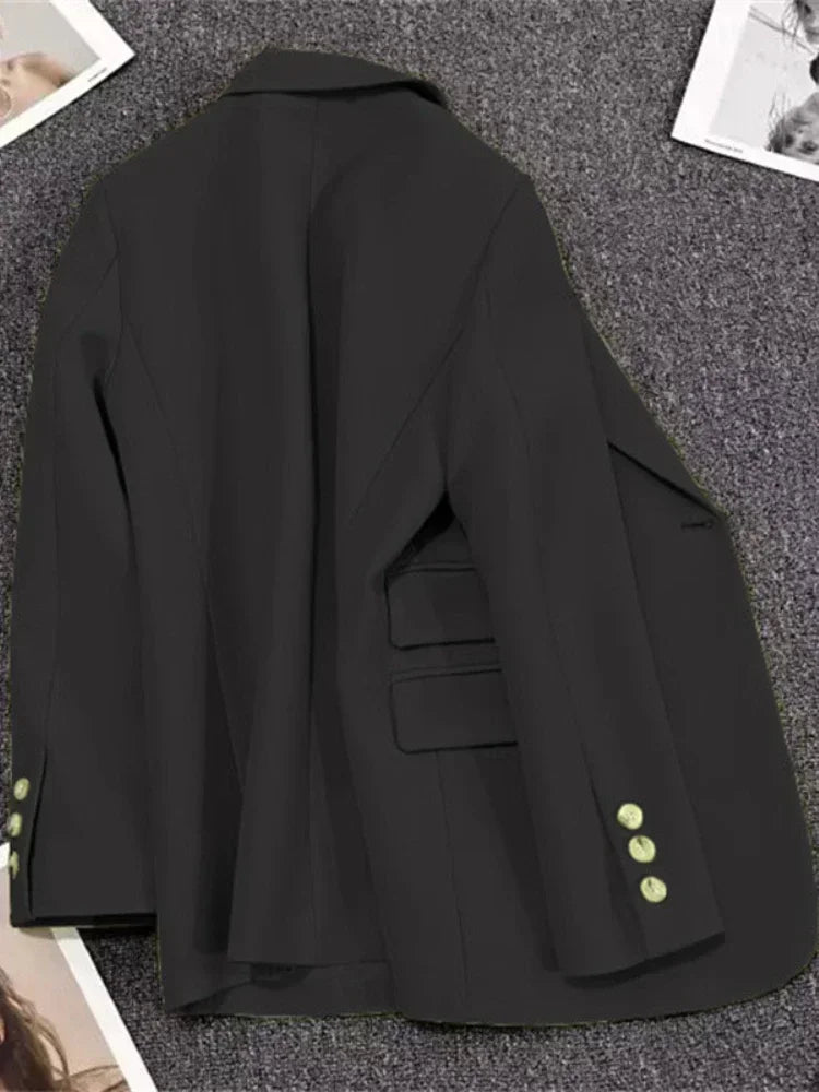 Women's Long Sleeve Office Blazer One Button Versatile Coats Casual Loose Blazers