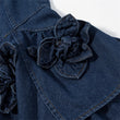 3D Flower Double Layer Denim Mini Dress Waist Sinching Mini Dress