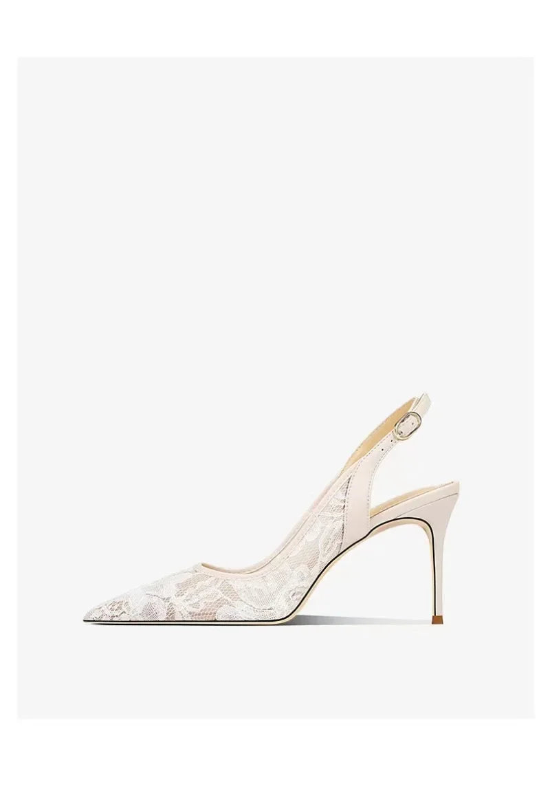 Sling Back Lace High Heels Pointed Toe Buckle Strap Sling back Sandal