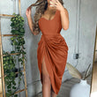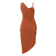 Women's Solid Color Sexy Slit Maxi Smocked One Shoulder Evening Dress