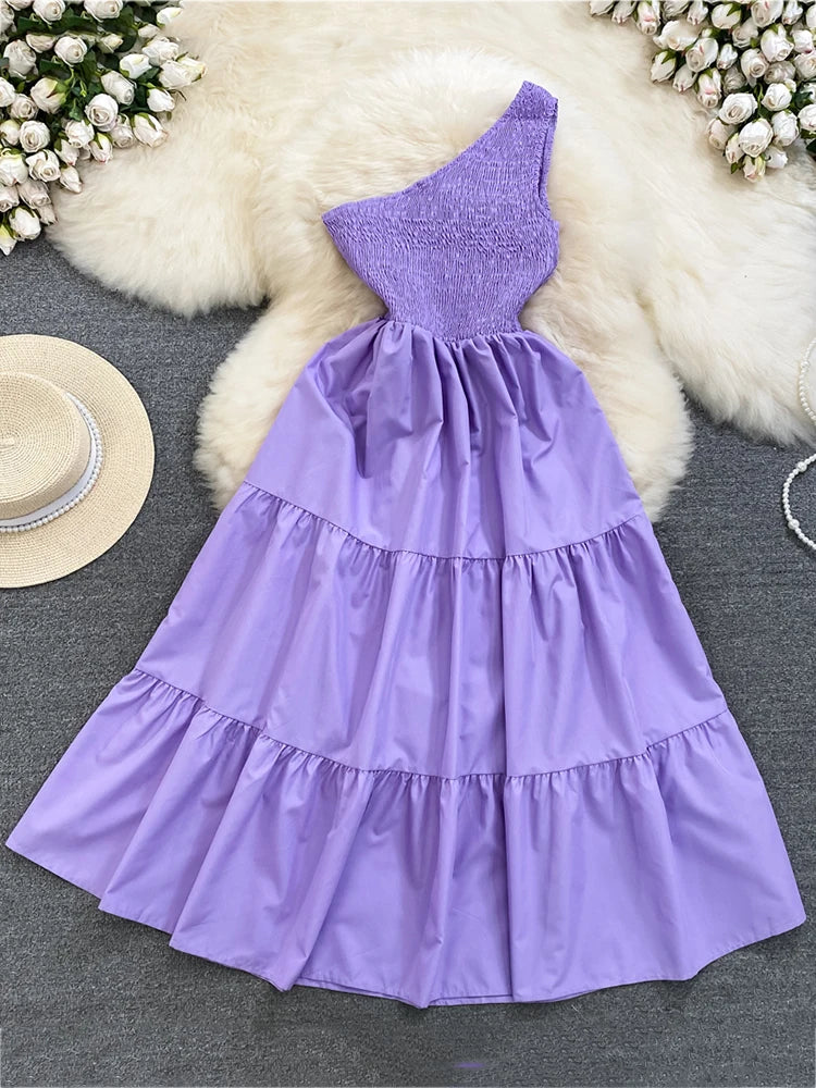 Women's Solid Stretchy Off Shoulder Gathered Midi Dress