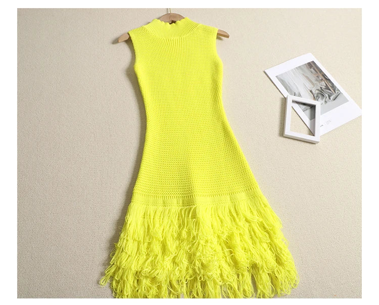 Chic Sexy Package Hips Mini Tassel Dress Women Designer Bodycon Party Dress